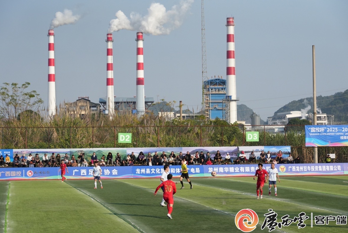 球员在赛场上激情竞逐,不远处的糖厂烟囱升起袅袅白烟,构成龙州独有的“甜蜜背景”。记者 李慧子 摄