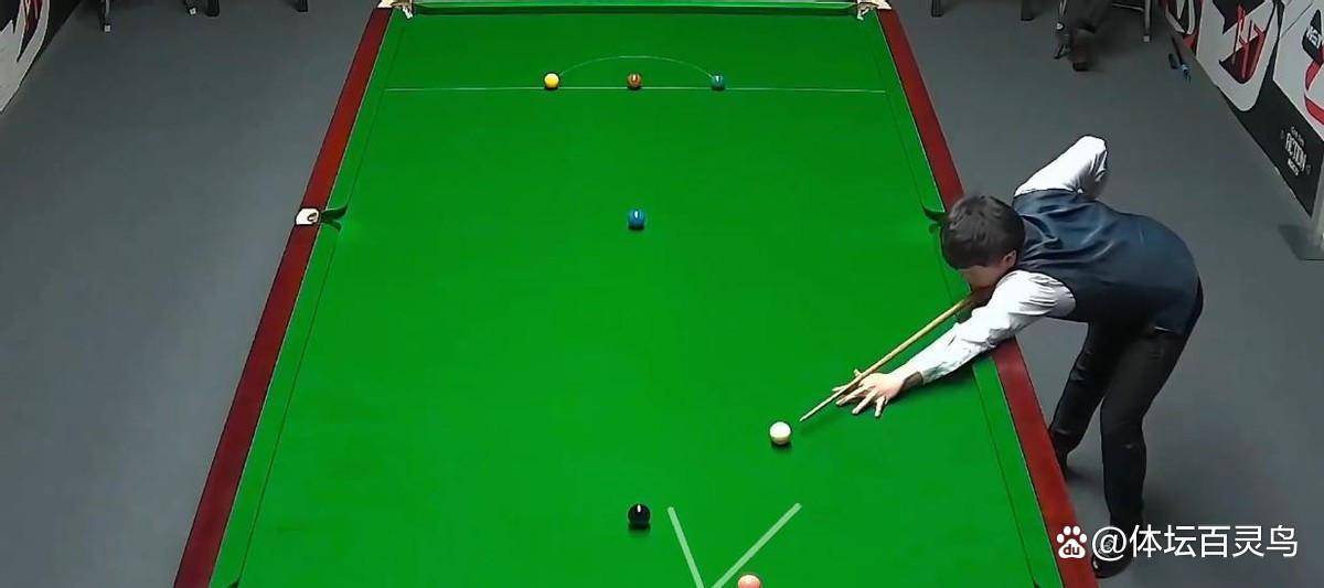 面对台面剩余的球,周跃龙冷静地围绕黑球和粉球连续得分,最终打出了一杆54分。