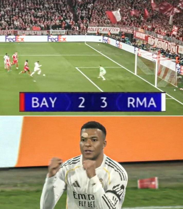 进球后的凯恩疯狂庆祝,这个进球对于稳定军心至关重要。 但进球盛宴还未结束,上半场补时阶段,皇马打出了一次快速反击。 维尼修斯在左路突破后送出横传,后点插上的姆巴佩在无人盯防的情况下轻松推射破门。 皇马带着3-2的领先进入中场休息,总比分也变成了4-4,悬念被拉满。