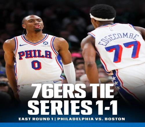 然而G2,76人反客为主,在第一节最多落后13分的情况下,第二节完成反超,随后整个下半场都处于领先。第四节76人一度被追到只差2分,最后打出一波20-8成功收下胜利,将大比分扳成1-1平。